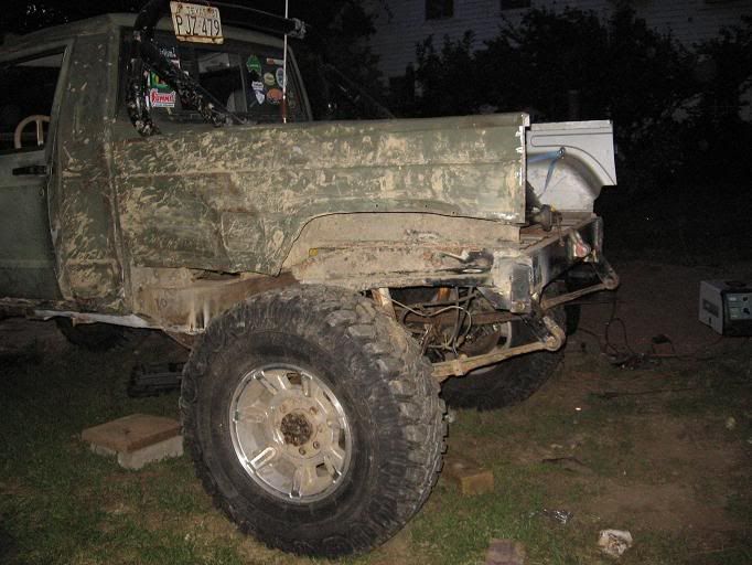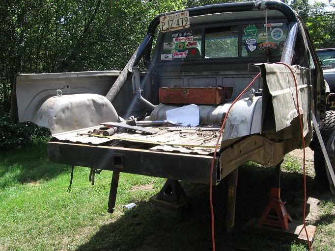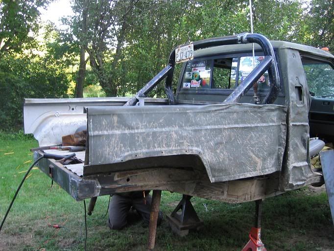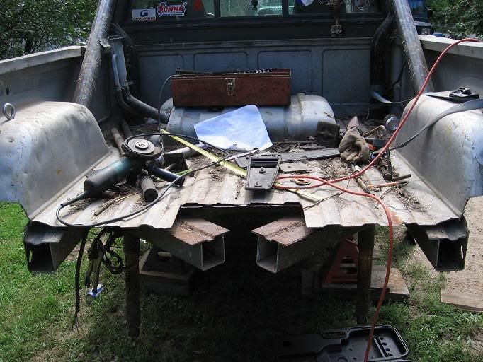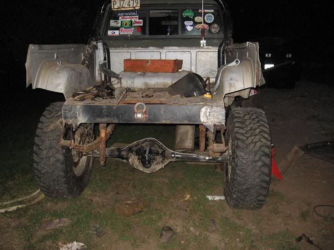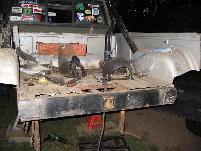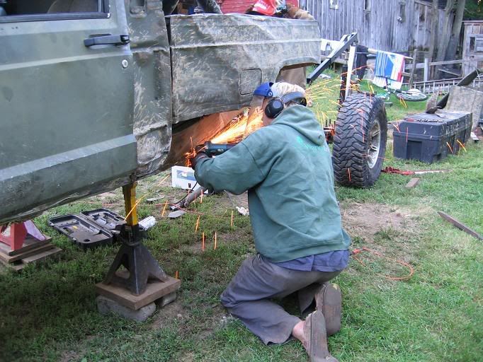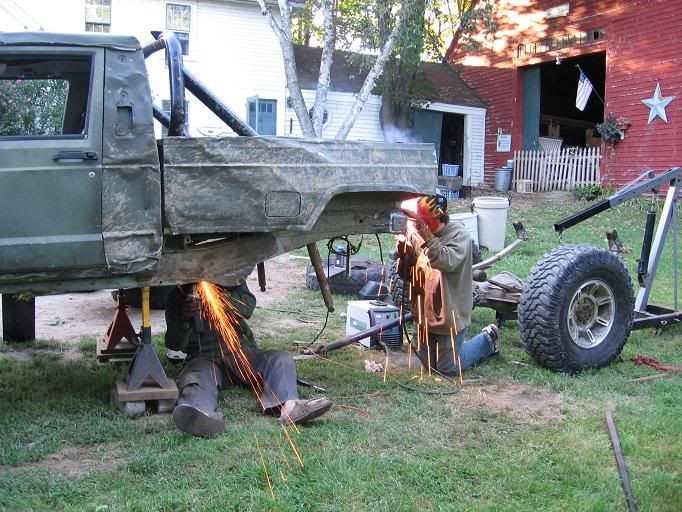 My brother welding the bumper...and iMan grinding off the spring hanger.