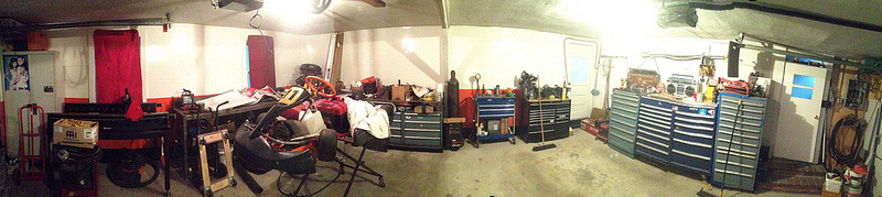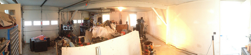 So i recently started moving my workspace from my old shop to my house.Figured I would share my work. My garage is an attached 2 bay, 20'x24'. Not exactly the best size workspace for my needs, but at the moment its going to have to work. It is attatched but the entrance is not directly into house so i don't have to worry about dust and smell.