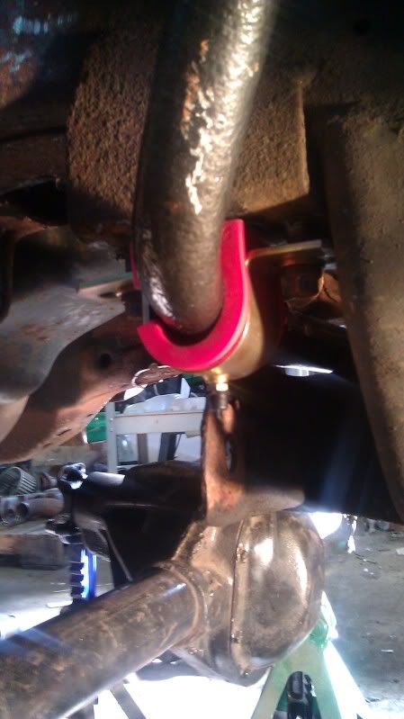 Yes, stock way bar, it is in good functional shape, but the factory coating is poor, I'll wire wheel it, I had some greesable bushings that fit perfect left over from an old project. I think I can make TJ sway bar links work.