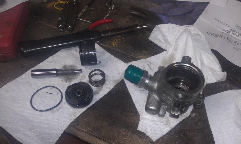 First on the list is a leaky power steering pump. It was leaking out the back and the leak was getting worse. I talked to Chris at the Q and he told me how to "rebuild" them. I decided to give it a whirl myself instead of sending it to Texas and paying for parts, labor and shipping.