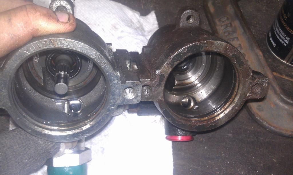 Comparison between stock XJ pump (right) and PSC (left). The inlet isn't that much larger on the more expensive PSC pump.