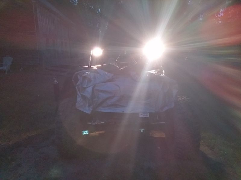 The front lights are wired and ready to go.  The rear light is wired on a separate switch so I can control it independently of the fronts.  The tail/brake lights are wired, but I only have 1 mounting bracket so I will need to get another to mount the other light.  The Firestik antenna has been mounted to a spring and connected to a working CB via a 3' coax cable (still need to tune SWR).  I also made a cradle on top of the fuel cell to hold the recovery bag that I won at the 'Q (Thanks Jeff @ Crown!).
