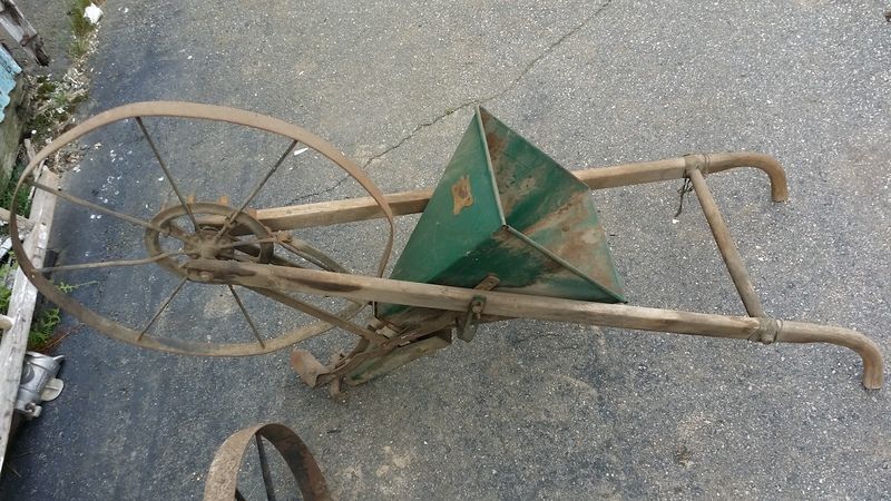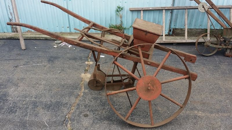 these are very old cultivators. one of them has a hemp belt that controlled the distribution of seeds.
